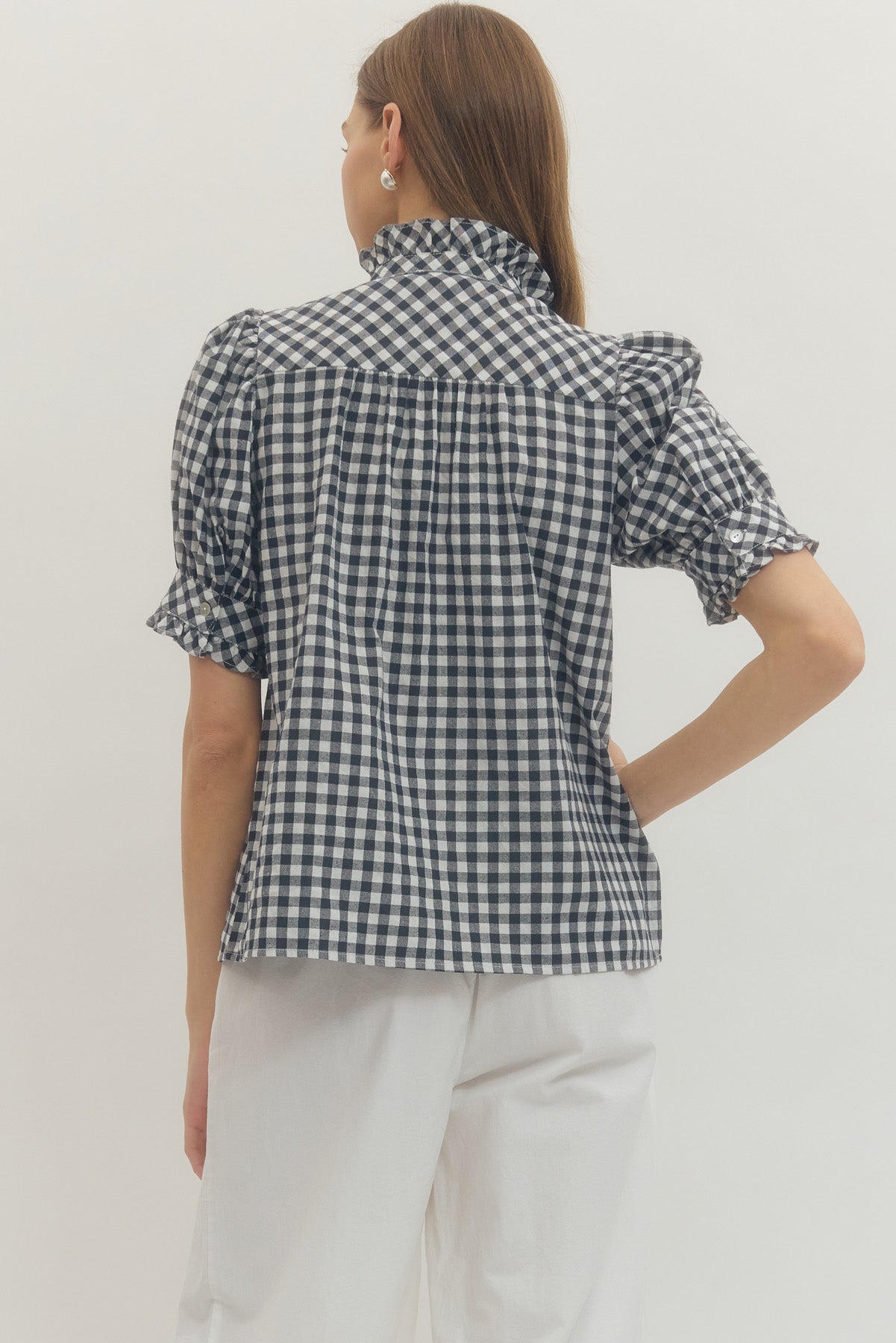 Kacie Collared Gingham Curvy Top