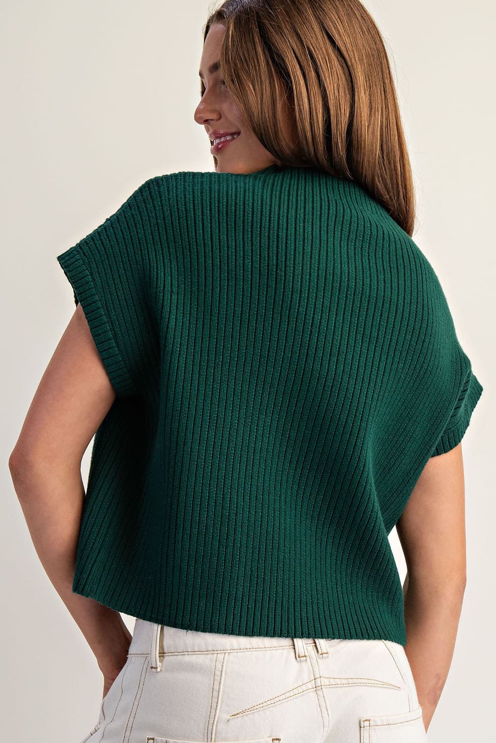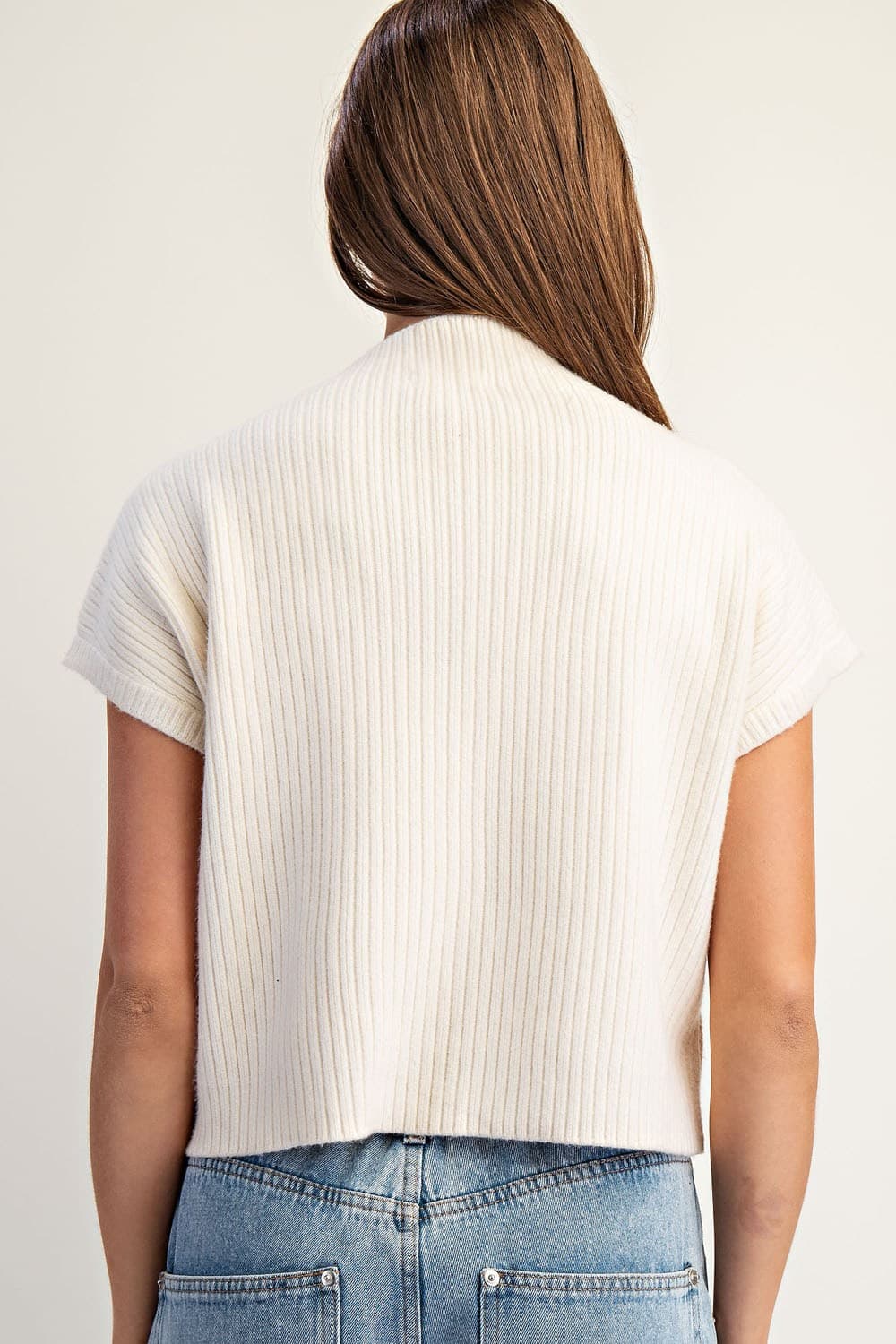 Ribbed Mock Neck Cap Sleeve Sweater ✨