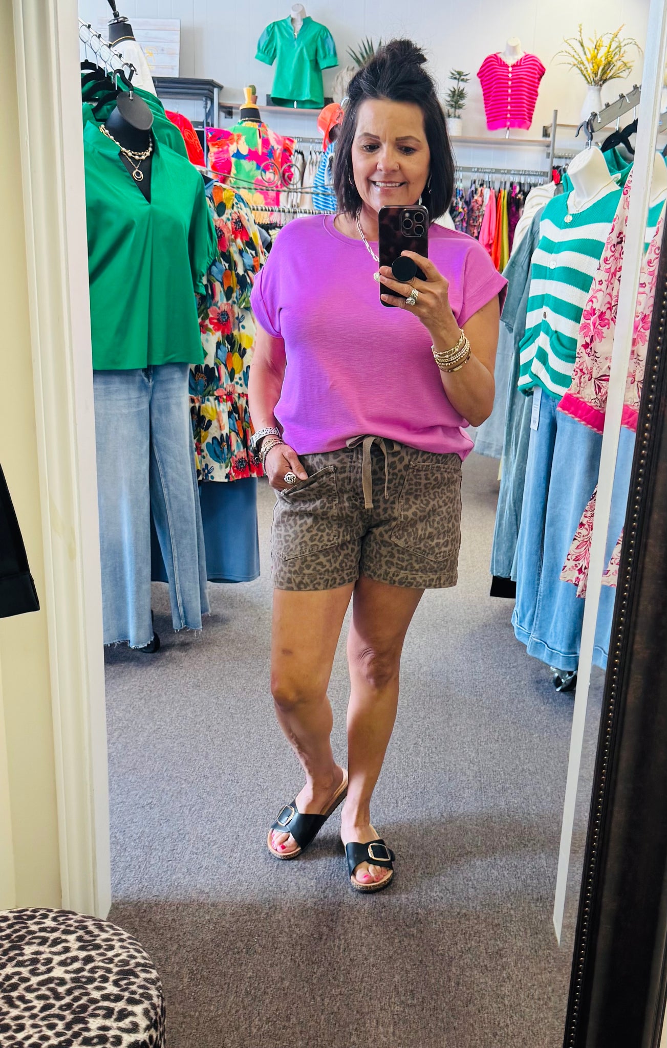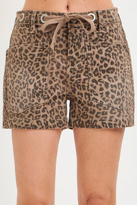 SLOUCHY LEOPARD PRINT PATCH POCKET SHORTS
