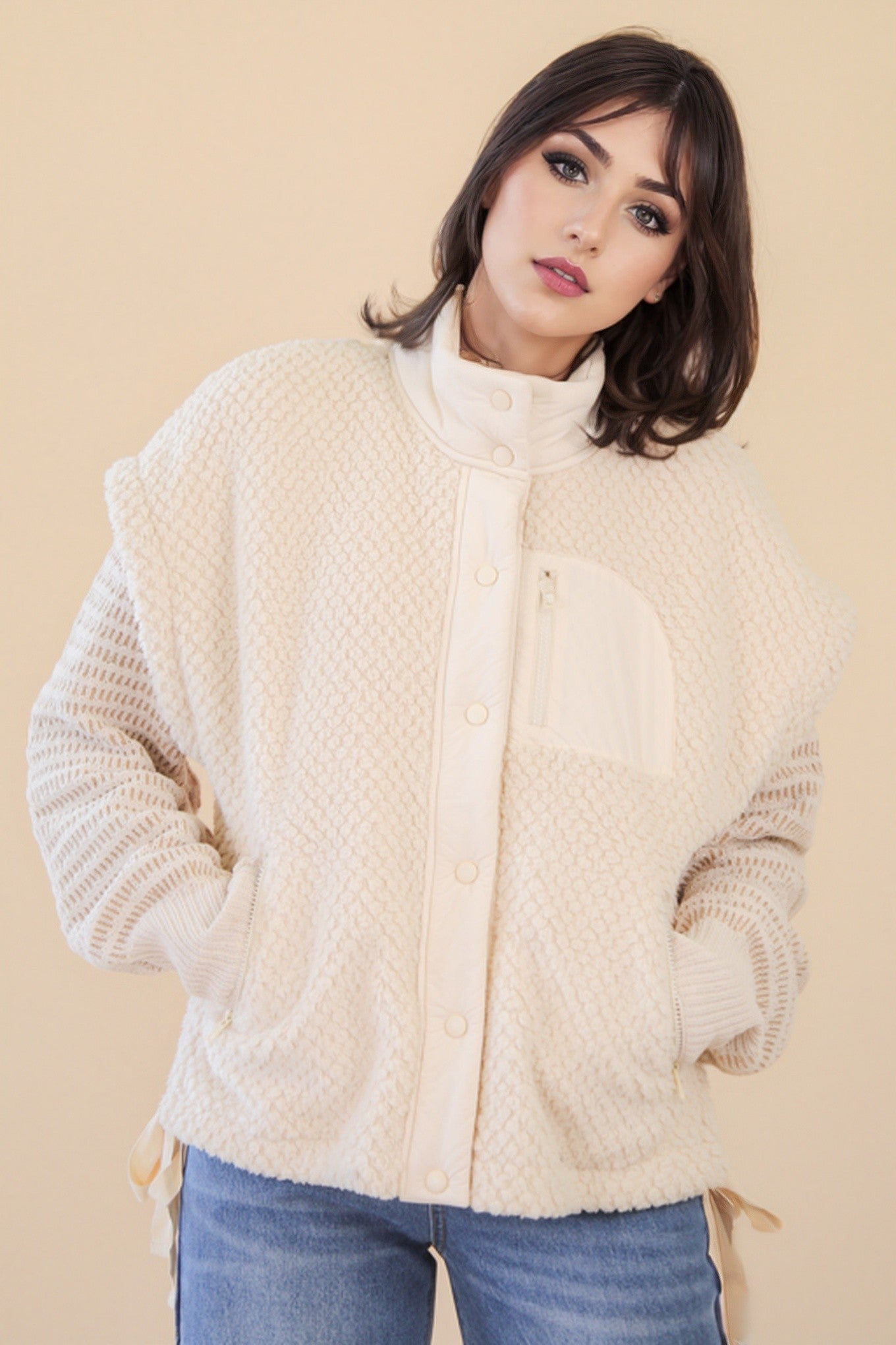 - Soft Textured Woven Vest W/ Side Tie - High Neck - Button Down - Patch Pocket (Model height: 5'9", wearing a Small, 2-2-2 Size Ratio, NEW IN)