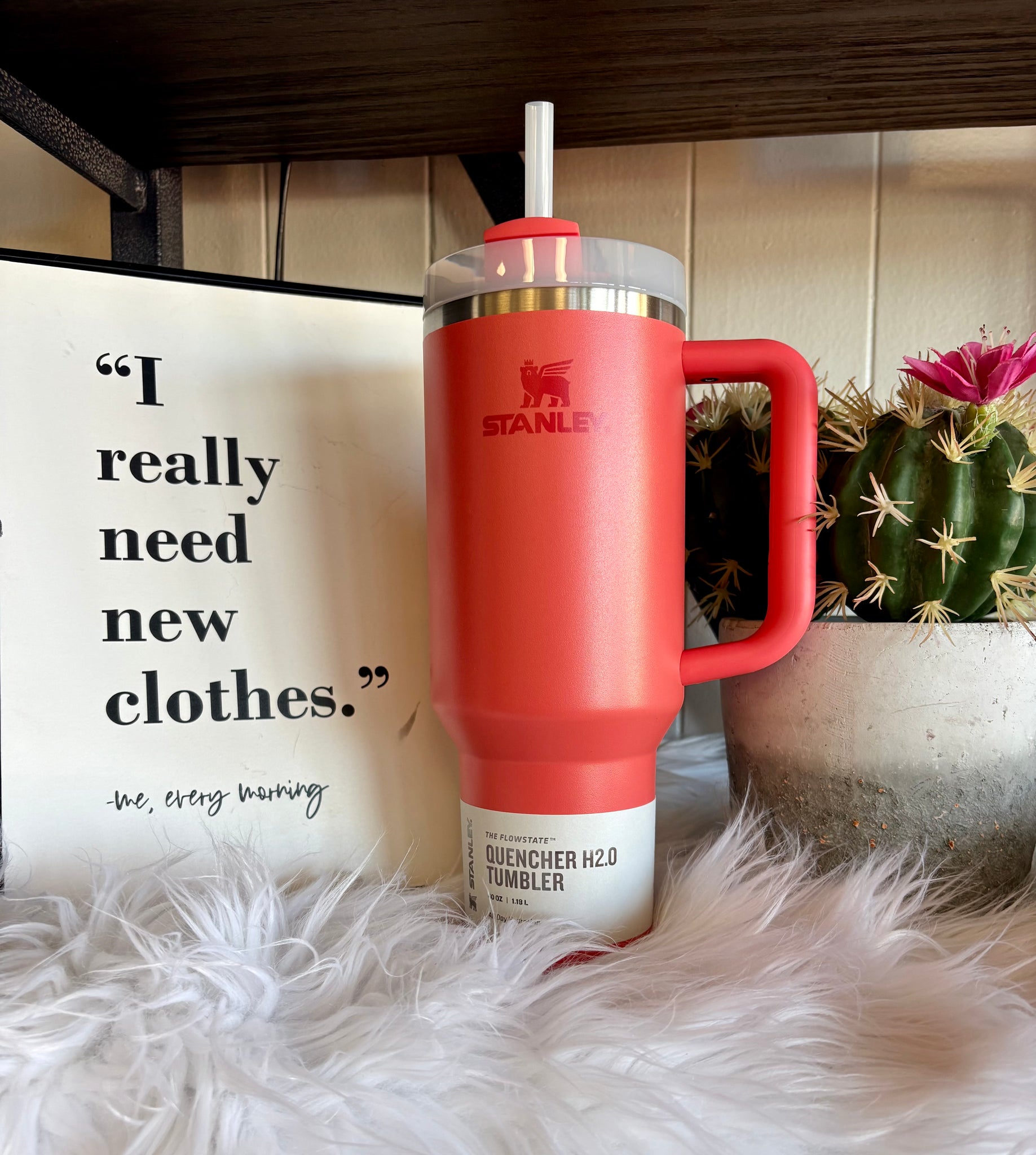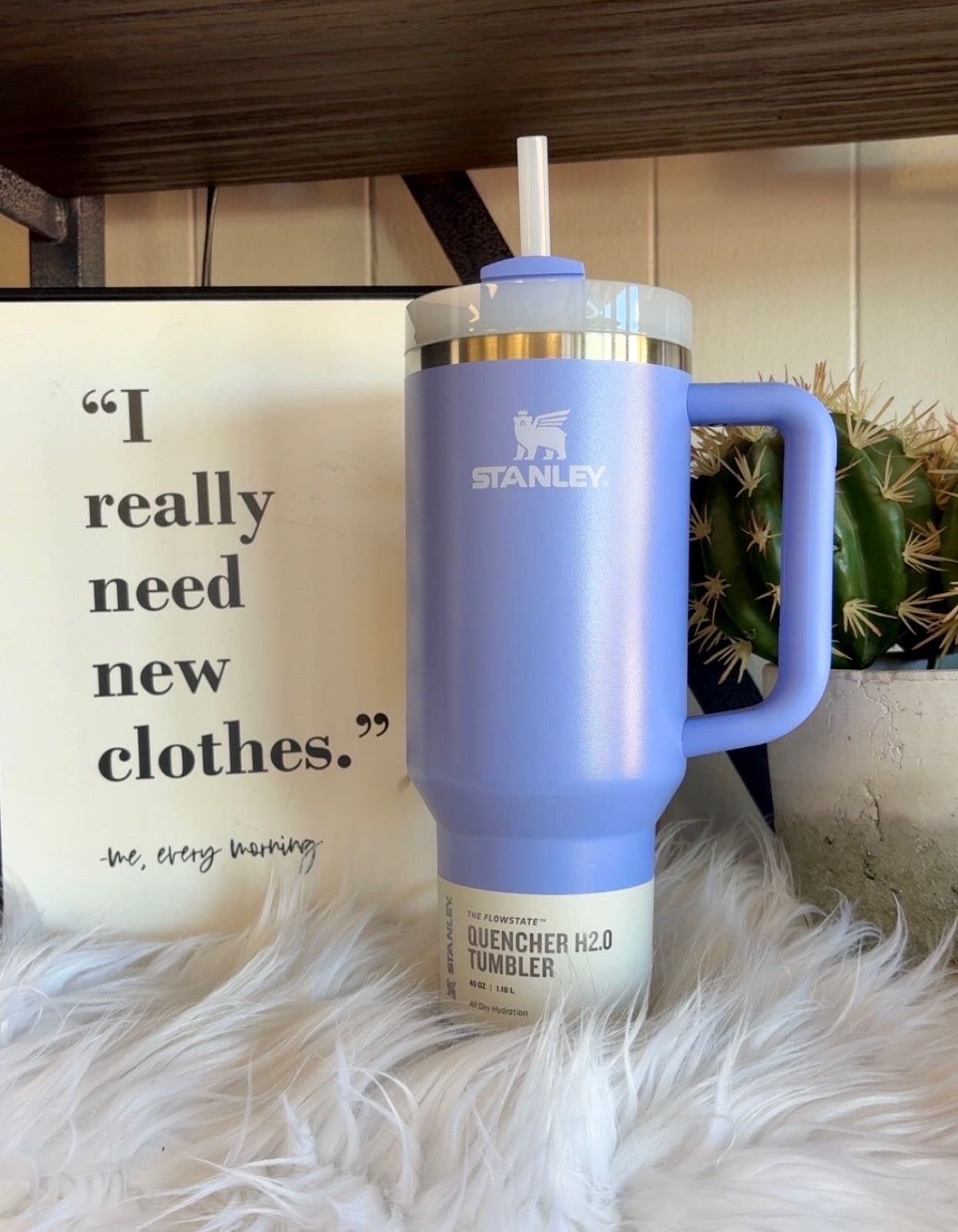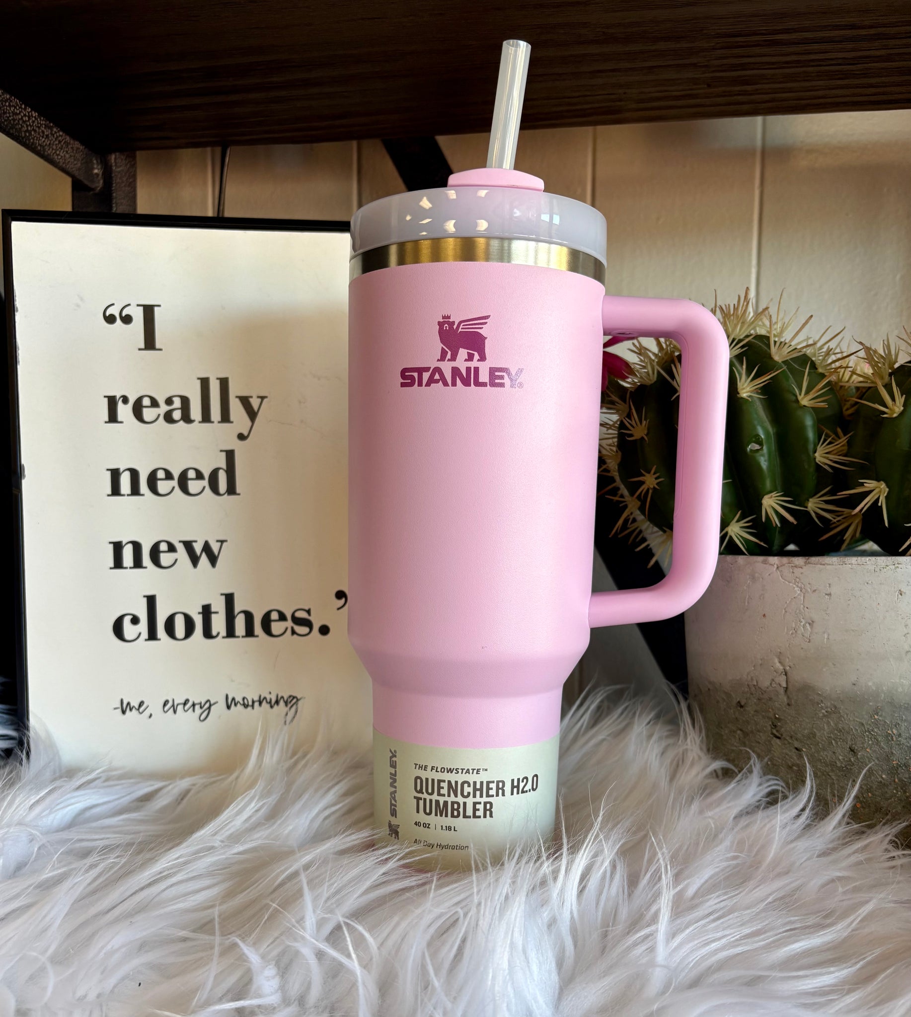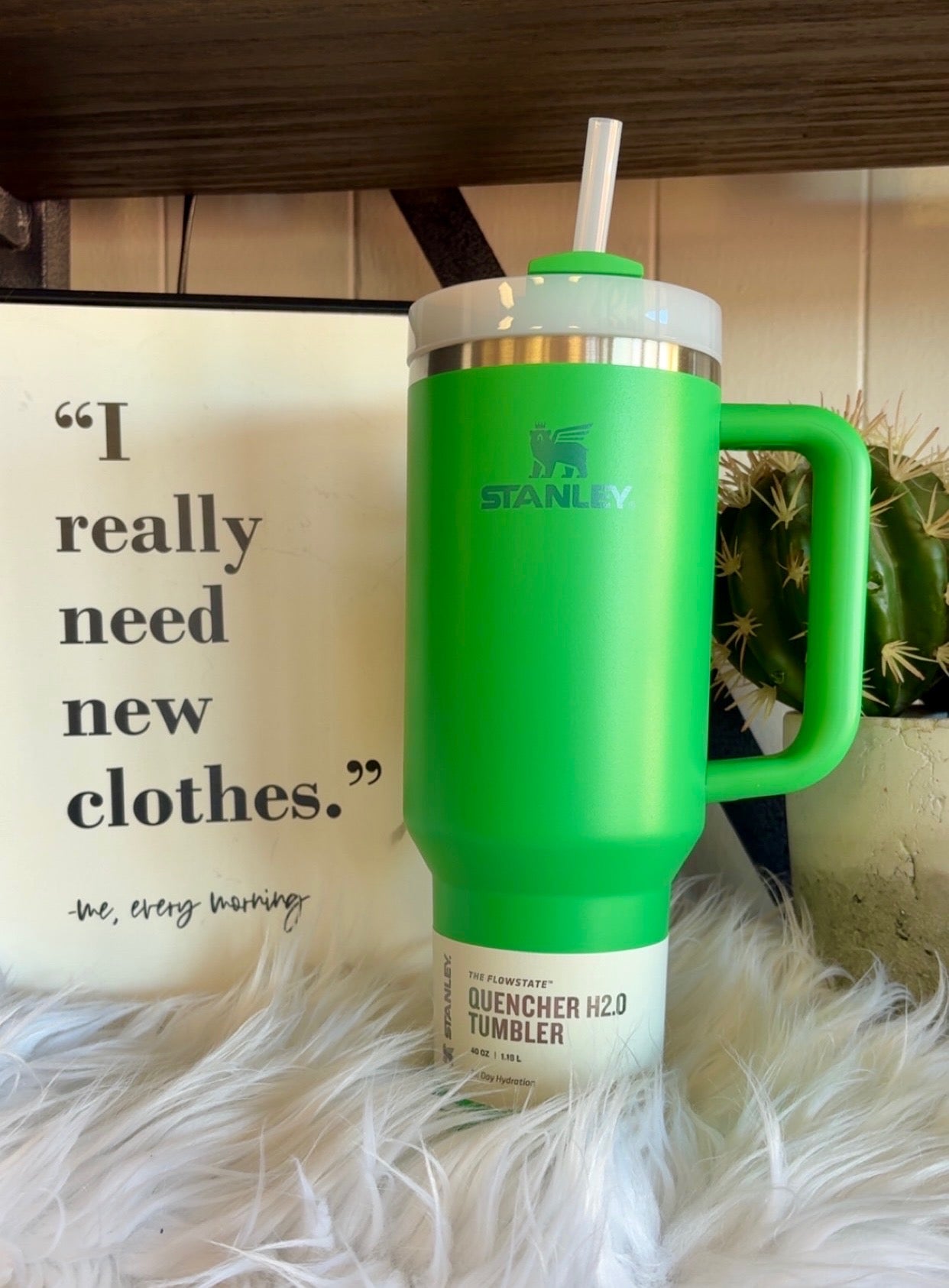 Constructed of recycled stainless steel for sustainable sipping, the Stanley® 40 oz. Quencher H2.0 offers maximum hydration with fewer refills. Commuting, studio workouts, day trips or your front porch—you’ll want this tumbler by your side. Thanks to Stanley’s vacuum insulation, your water will stay ice-cold, hour after hour. The advanced FlowState™ lid features a rotating cover with three positions: a straw opening designed to resist splashes while holding the reusable straw in place, a drink opening, and a full-cover top. The ergonomic handle includes comfort-grip inserts for easy carrying, and the narrow base fits just about any car cup holder.