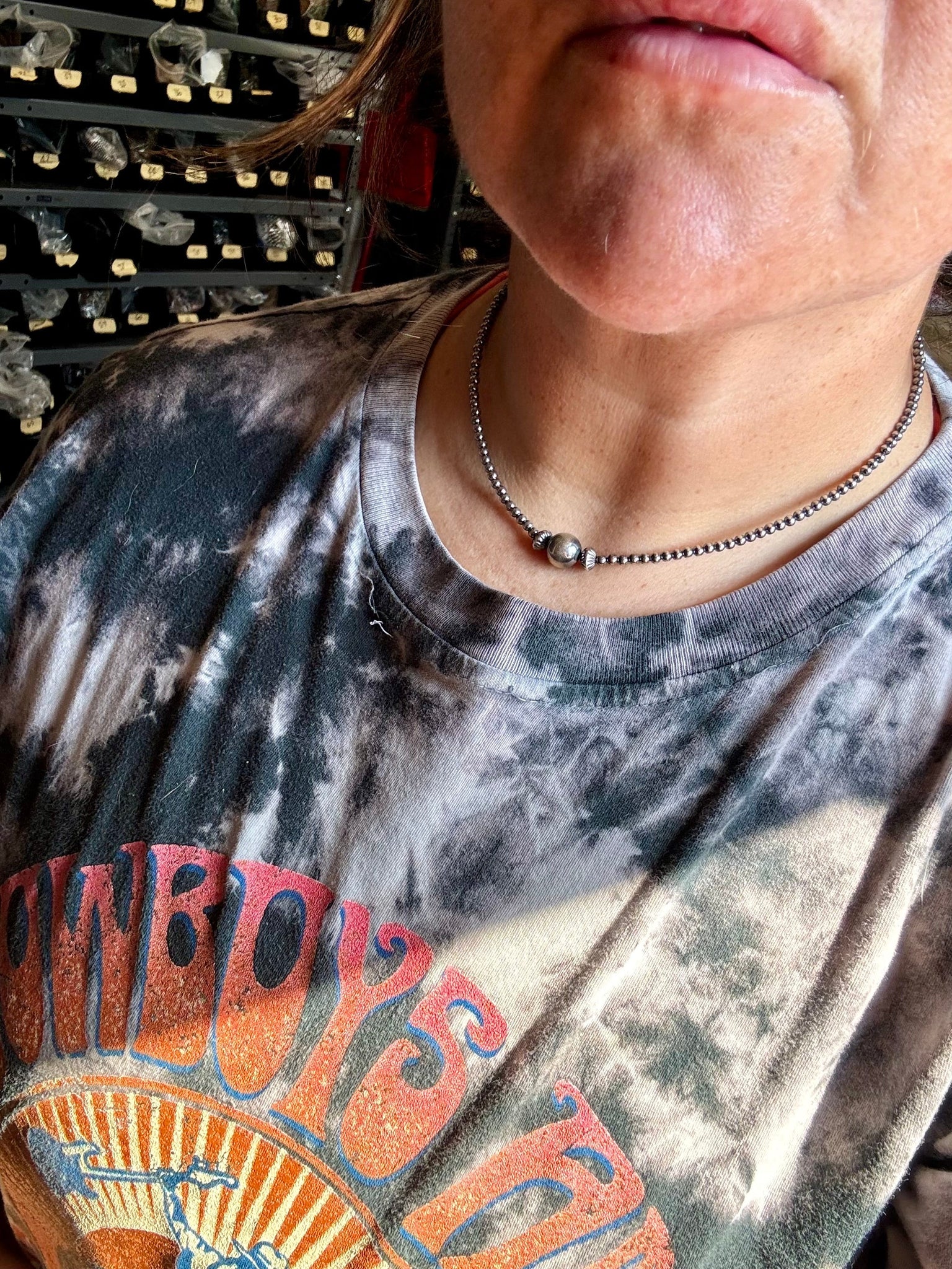 14 inch 3 mm sterling silver pearls choker - 10 mm middle
