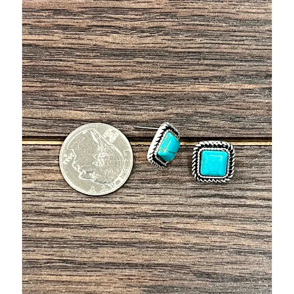 Small! 0.6" Long, 8mm Square Stone Stud Earrings * Natural stone may vary in size, color or shape * 0.6" long post earrings * 8mm stone * Light! Each earring 3 grams weight * Alloy metal, antique silver plate * Nickel, Lead & Chrome free