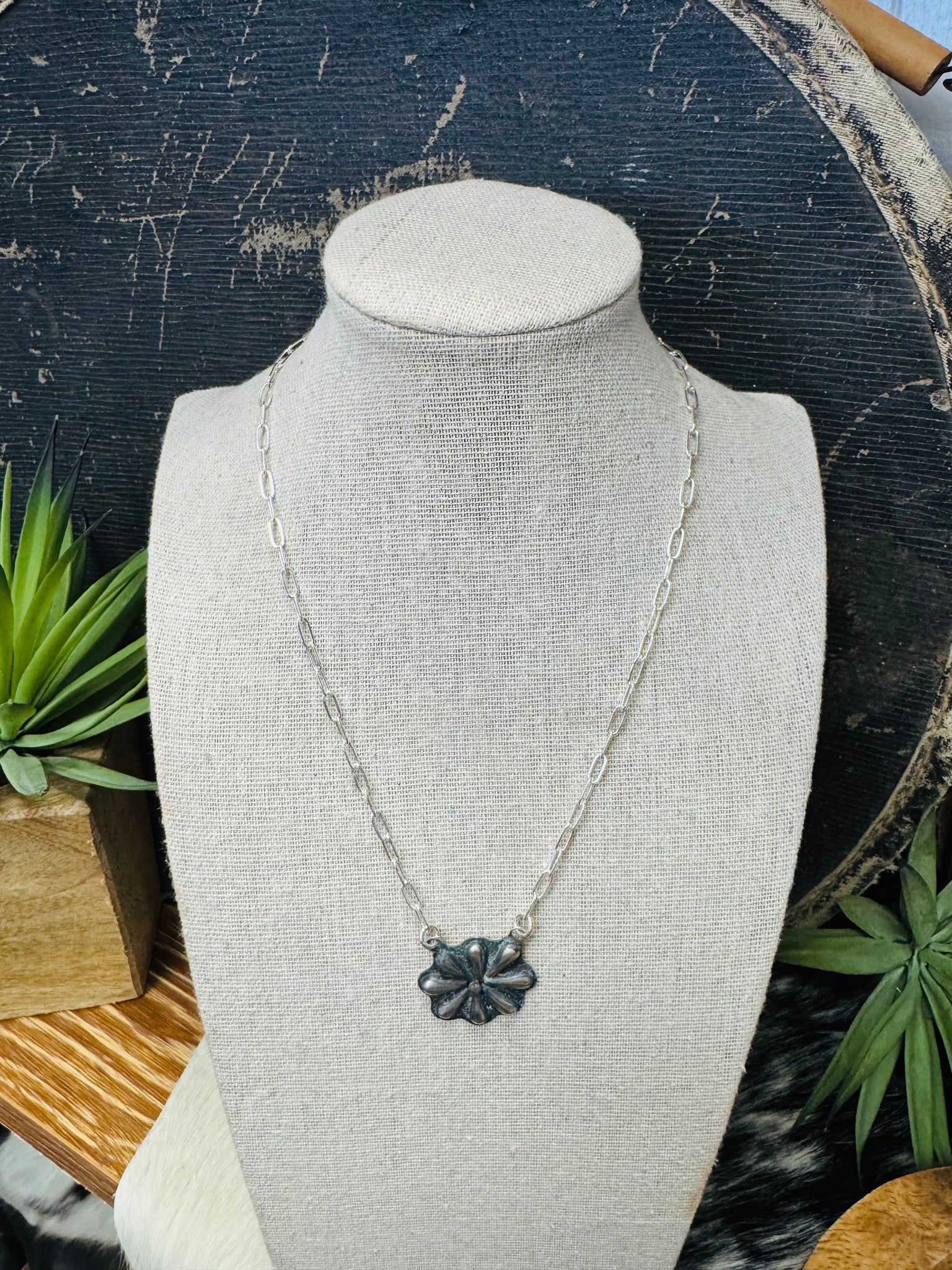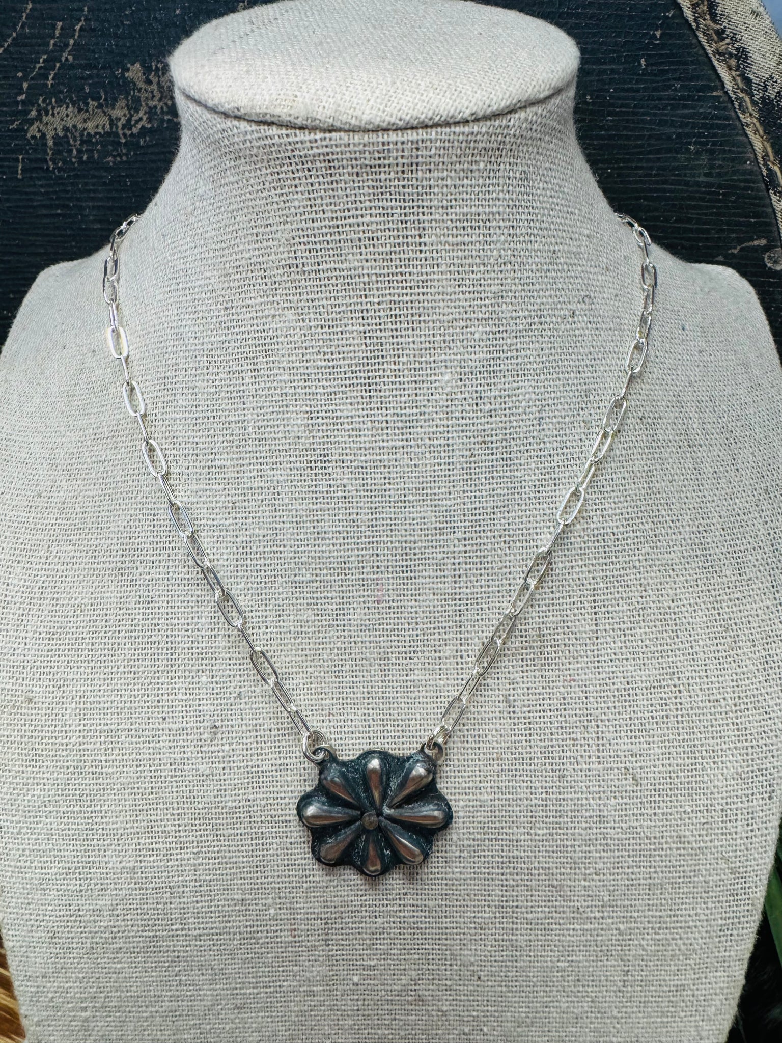 Sterling Silver Authentic Handmade Concho Pendant Necklace