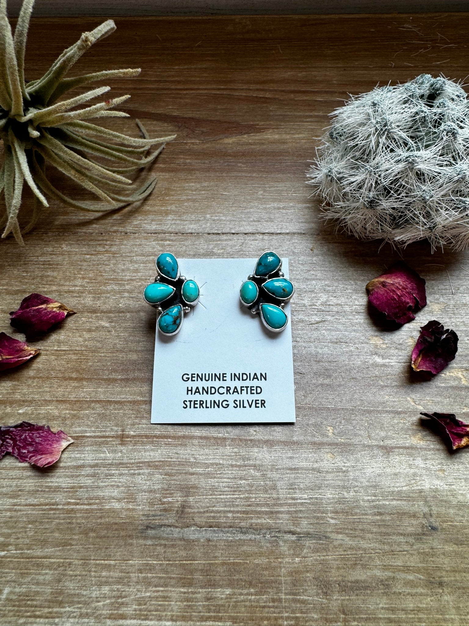 Kingman Turquoise Stud Earrings – Sterling Silver – Navajo Made by Marcella James
