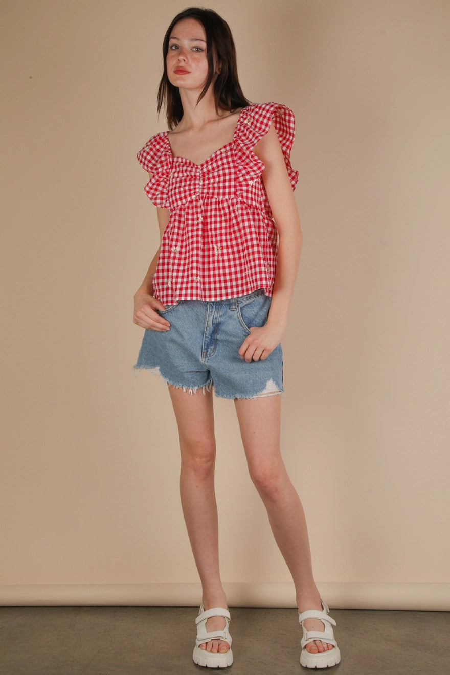 - Embroidered Check Sleeveless Blouse