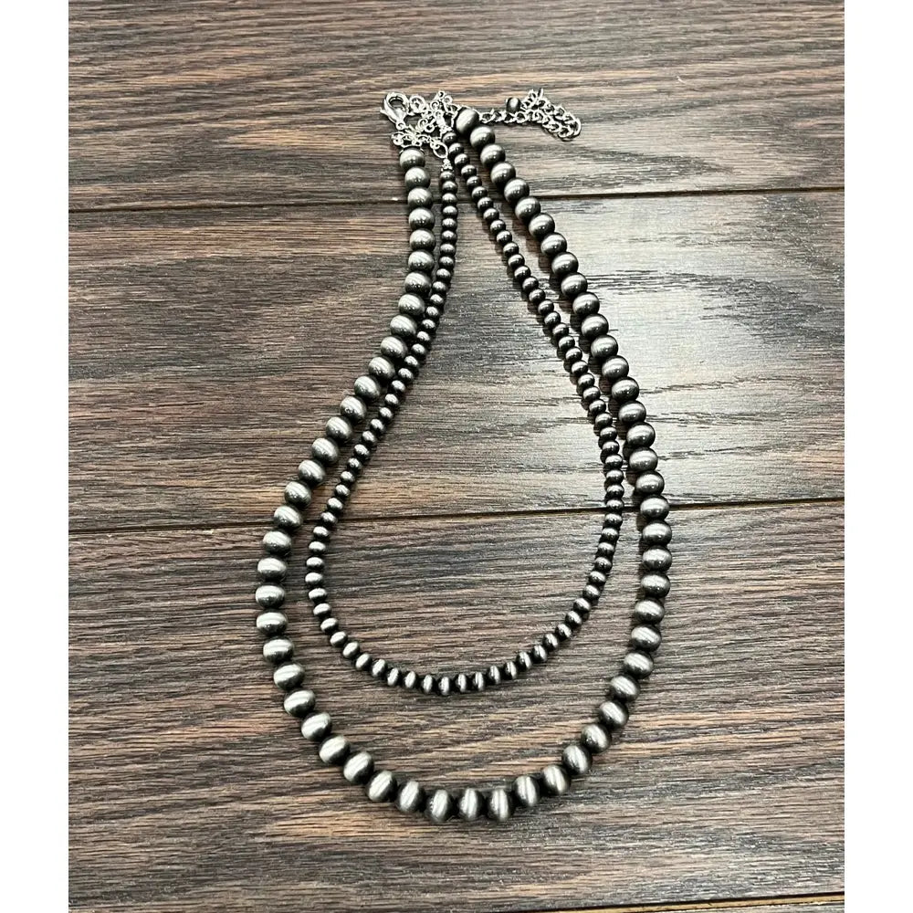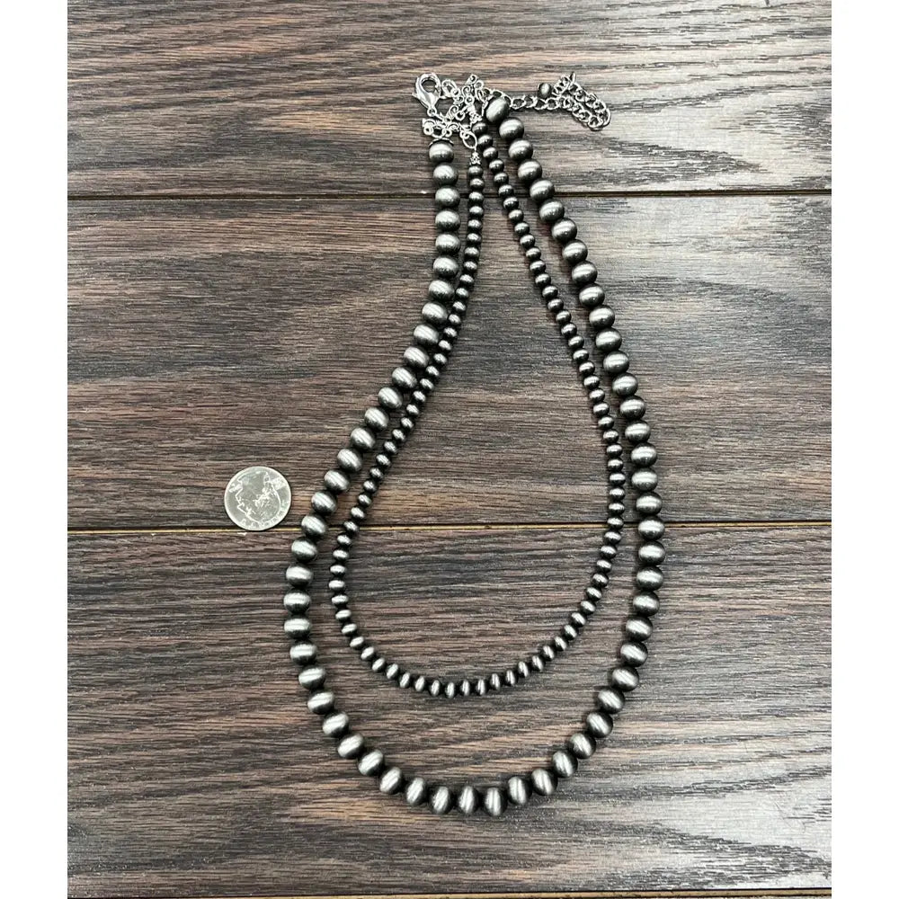 24" to 29" Long, Handmade 2-strand Navajo Bead Necklace * 2-strand (20", 24" long) necklace & 5" extender * 20" long, 6mm navajo bead necklace * 24" long, 10mm navajo bead necklace * 50 grams weight * Nickel, Lead & Chrome free